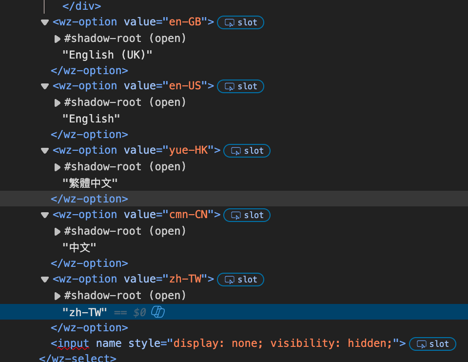 ‘zh - TW’ → 繁體中文(台灣)