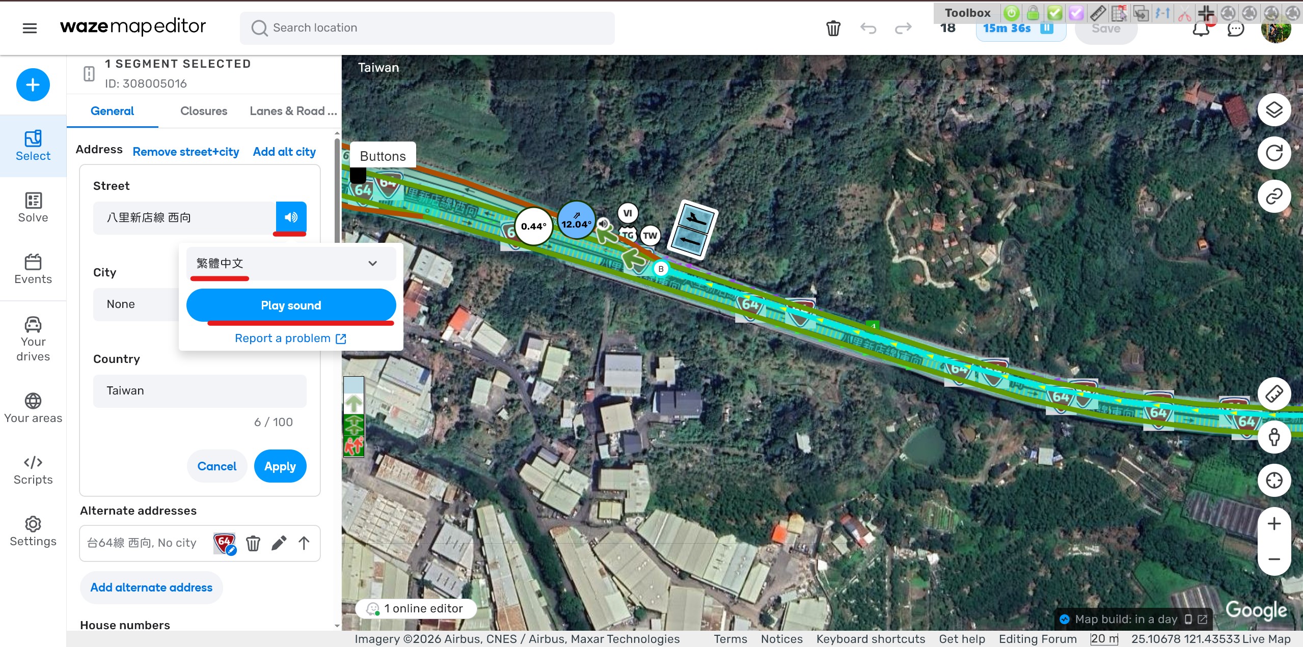 https://waze.com/editor?env=row&lat=25.10710&lon=121.43567&zoomLevel=19&segments=308005016