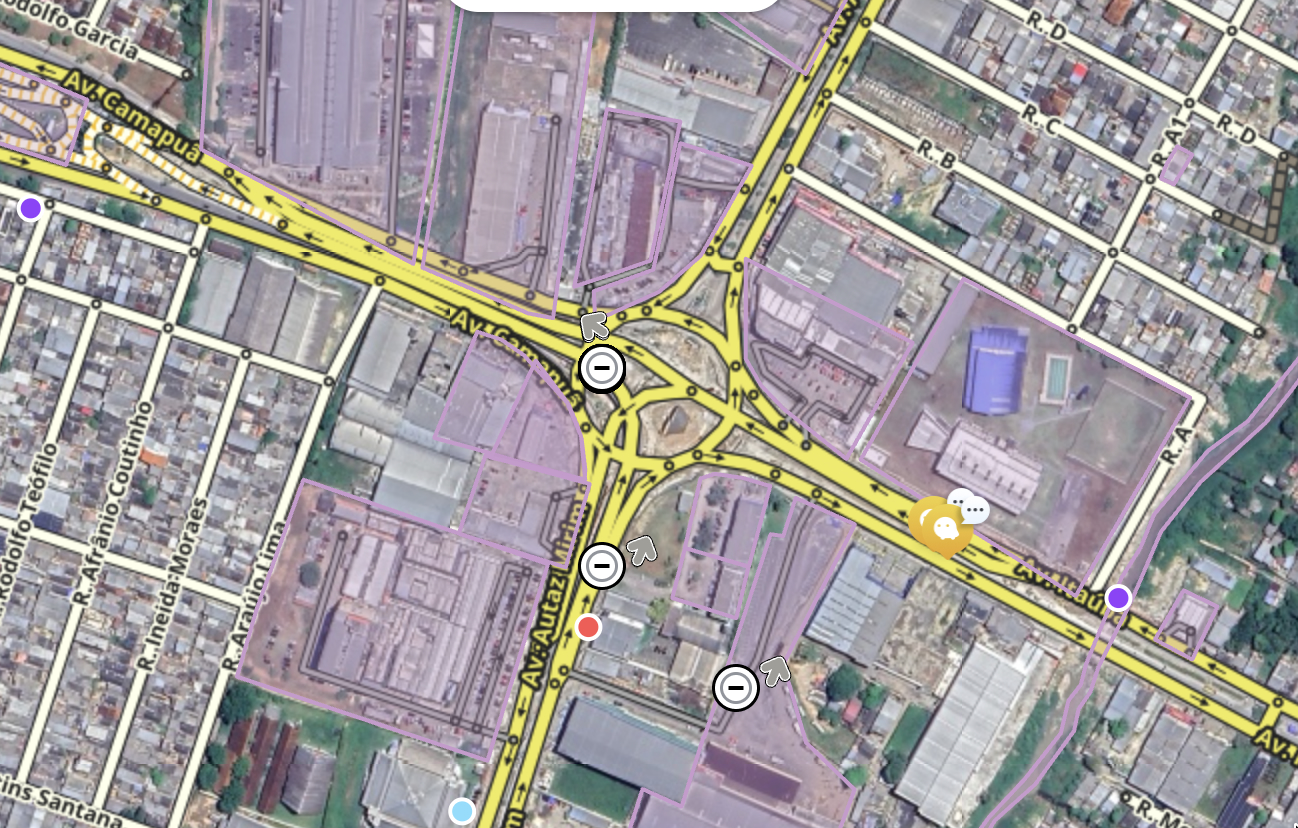 Em atendimento as URs 24855156 e 24854344, foi atualizado o Cruzamento da Av. Des. João Machado, com R. Professora Cacilda Pedroso atualizado com as devidas modificações realizadas pela prefeitura: