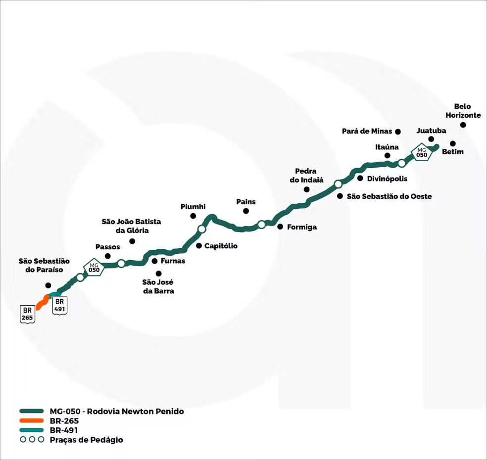 Cobertura concessionária Via Nascentes rodovias MG-050 BR-265 BR-491: