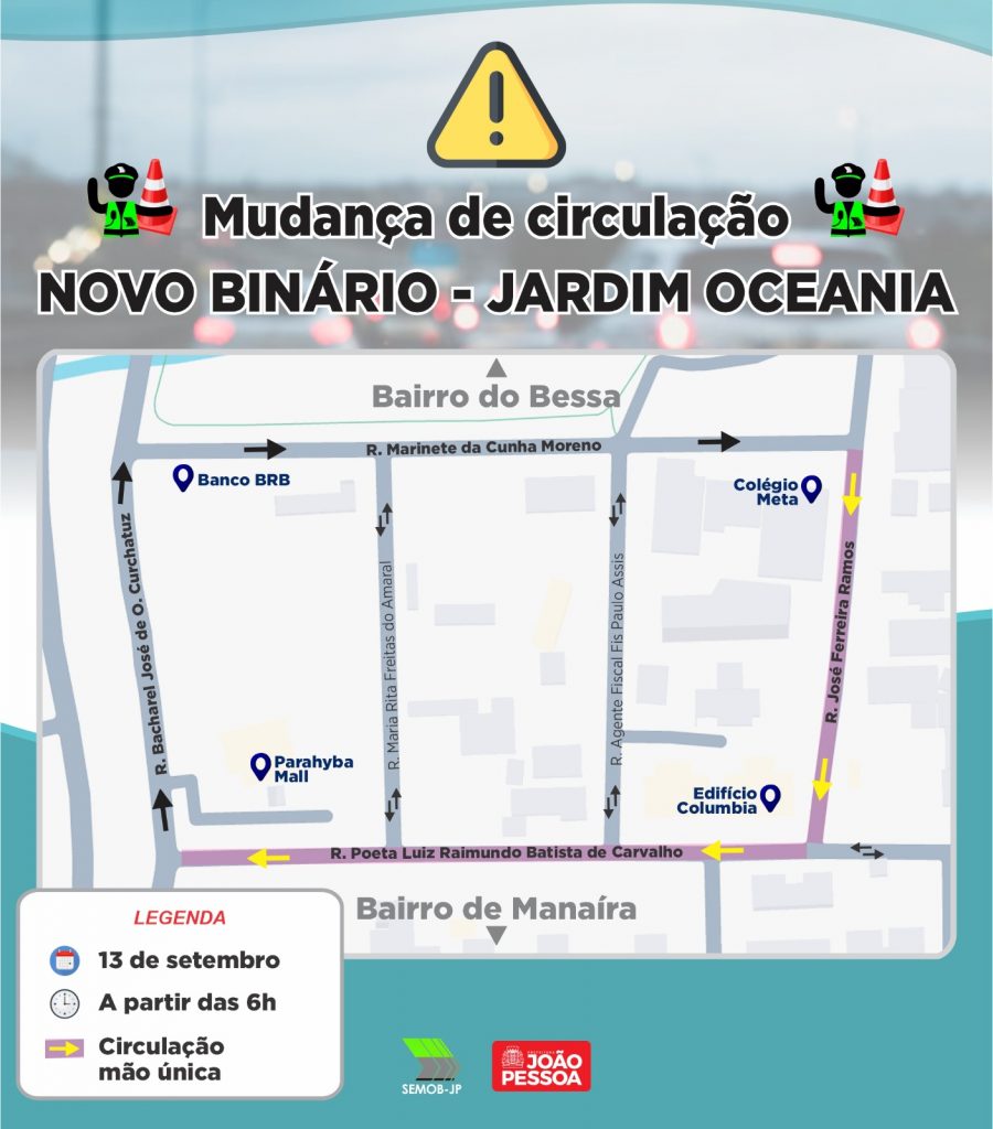 Semob-JP implanta novo binário com mudança de circulação em vias do Jardim Oceania
