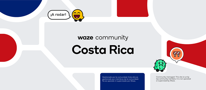 La comunidad de Costa Rica está formada por todos los usuarios de Waze que utilizan la aplicación en nuestro país. La actualización de los mapas de las carreteras es realizada directamente por los usuarios, utilizando el Editor de Mapas de Waze y bajo la supervisión de editores con mayor nivel.