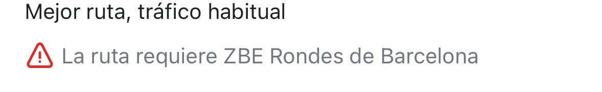 Al crear una ruta en Barcelona, me dice que la ruta requiere ZBE Rondes de Barcelona, pero no puedo encontrarlo dentro de la lista de Pases de peaje y VAO.
