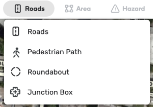 Pedestrian segments connect to drivable segments with a virtual node, which can be identified by its white dashed border. Pedestrian segments connect to each other through standard nodes.