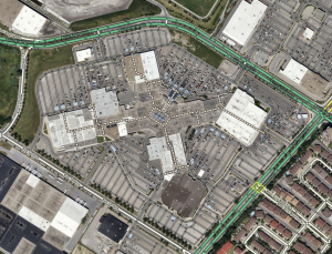 A basic example is Carrefour Angrignon in Montreal. Elsewhere in Montreal, the Palais des Congrès is a more complex example as this mall literally sits on top of an underground major highway. The walking trails inside the shopping area attach to the surface streets, which allows proper routing.