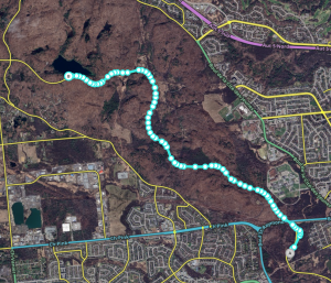 Drawing a walking trail is straightforward. Like drivable segments, they must be assigned a name and city (or have None marked) to be queued for addition in a tile build. You may name them with any name found on signage or in official use. You may also not name them, although any with addresses should be named.