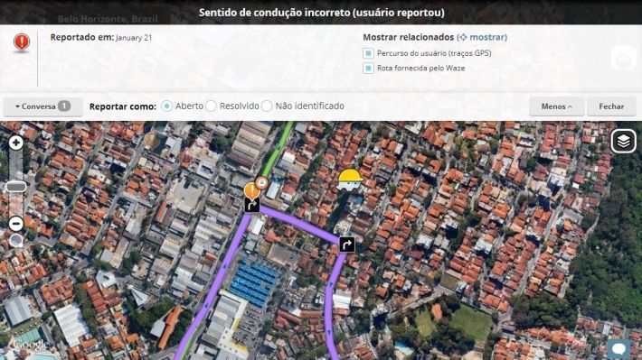 No editor de mapas do Waze, os pedidos de atualização contém informações sobre a rota na qual o usuário trafegou bem como a rota que o Waze sugeriu. Isso torna o diagnóstico da reclamação muito mais fácil em muitos casos.