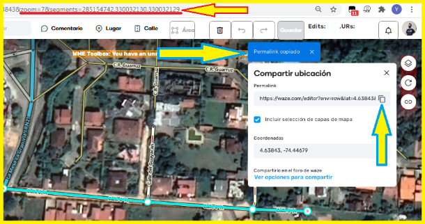 El Permalink es una dirección URL que nos dirige a un sitio geográfico en especifico dentro del Editor de Mapas de Waze (Waze Map Editor ) alias, WME . El icono para acceder al permalink lo encontramos en la parte derecha superior de la pantalla
