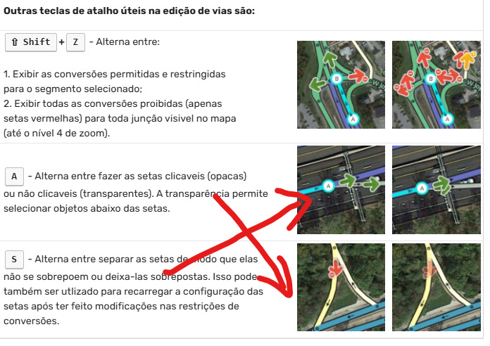 No box sobre Outras teclas de atalho úteis na edição de vias são: