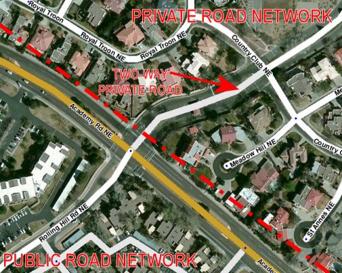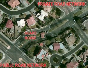- Road segments around the perimeter that look like they may be connected on the aerial images, but are really blocked by fences or other structures difficult to see on the aerial.