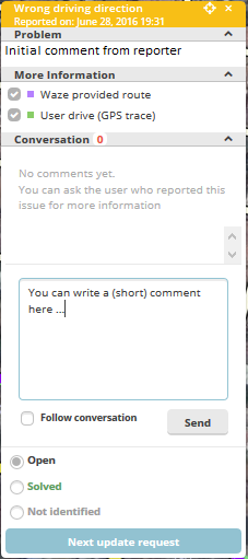 -If you did everything to handle the problem, but it can’t be solved in the map, you can close it as Not Identified.