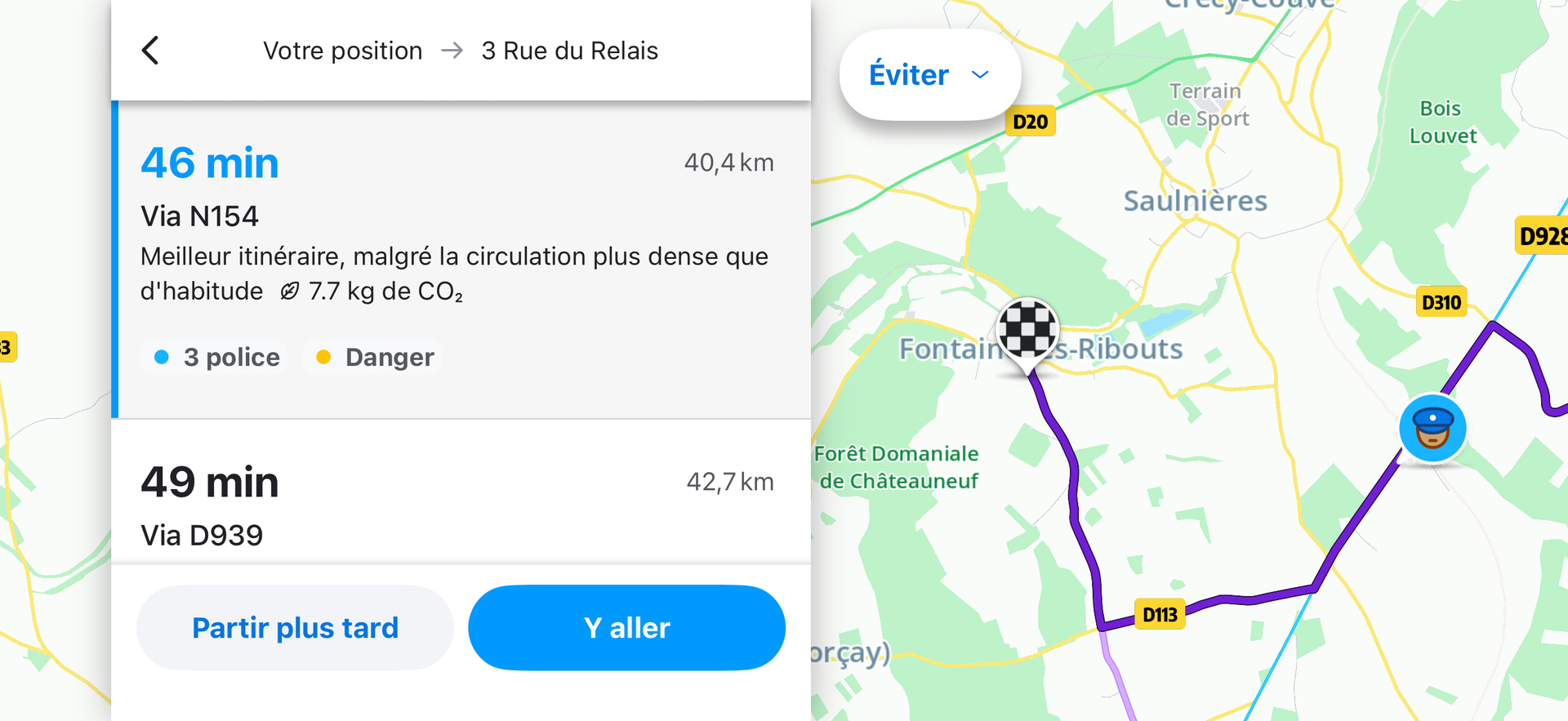 Ce fonctionnement pose sérieusement question, car le réflexe d’un utilisateur lorsqu’il cherche à rejoindre une destination et qu’il ne s’affiche qu’un seul résultat pour sa recherche est de cliquer directement sur ce résultat. Dans le cas de figure de l’exemple 1, cela amène à 20 minutes de la destination…