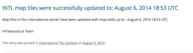 Seperti anda lihat bahwa ada 2 tanggal penting di situ. yang pertama adalah tanggal pemberitahuan 9 Agustus dan yang kedua posisi Status Update Map tersebut pada tanggal 6 Agustus, secara sederhana ini berarti Waze Map yang berlaku sekarang adalah Map pada tanggal 6 Agustus (UTC) dan bukan pada tanggal 7,8 atau 9. Semua editan pada tanggal 7 keatas belum tertampilkan pada peta waze saat ini.