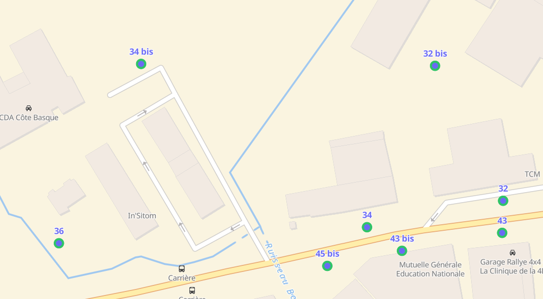 J’ai numéroté la zone et ajouté une private car le 32bis est décalé par rapport à la route.