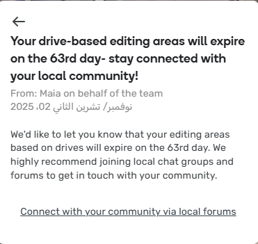 “Your drive-based editing areas will expire on the 63rd day - stay connected with your local community!”