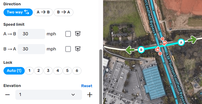 Locked Roads: You cannot edit roads locked by a higher level editor than you. To get it unlocked, you should post on the UK Unlock Request Forum.