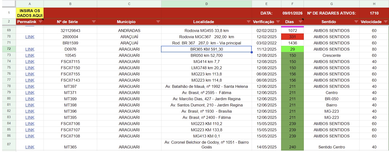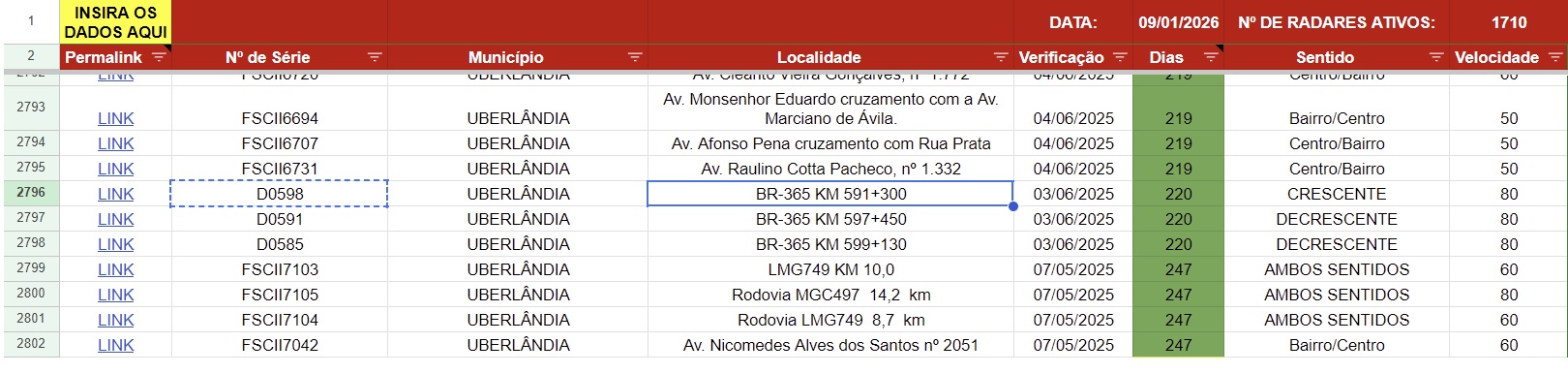 Olá, agradeço atualizarem os novos radares em SP, foram divulgados pelo DER em set/25.