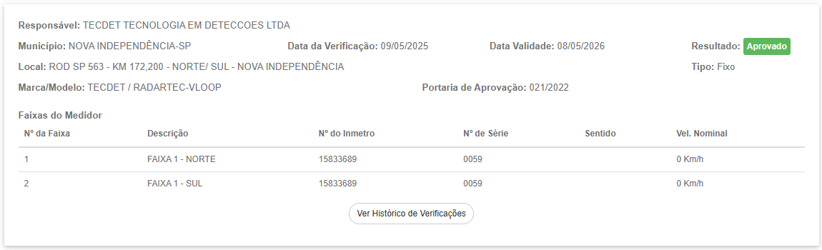 Motivo: Radares estão homologados no Inmetro. (Pelo menos 1 está certeza, o outro eu acho que foi vacilo de cadastro, pelas datas no histórico deveria estar Aprovado também).