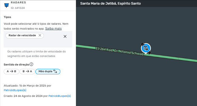 Com a atualização do WME, não é mais necessário ajustar e alinhar o radar seguindo o fluxo da via. Agora, basta posicionar o pin no mapa configurar a Instrução de Direção.