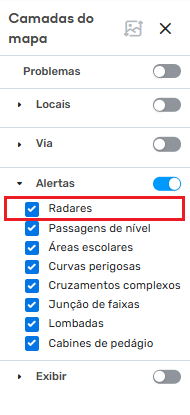 Por exemplo, se os editores mapearem um radar de Faixa de ônibus + Velocidade, apenas o radar de velocidade será exibido para os usuários no aplicativo.