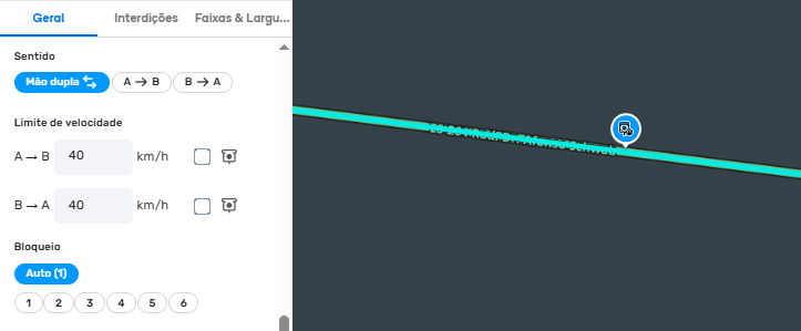 Os radares estão bloqueados conforme o bloqueio definido pelo segmento. O segmento que estiver com o tipo de bloqueio Auto, definirá o nível para editar o radar. Para remover, o editor deve ter pelo menos o mesmo nível do segmento que está o radar. Por meio do Bloqueio Manual, o editor escolhe o nível de bloqueio adequado: