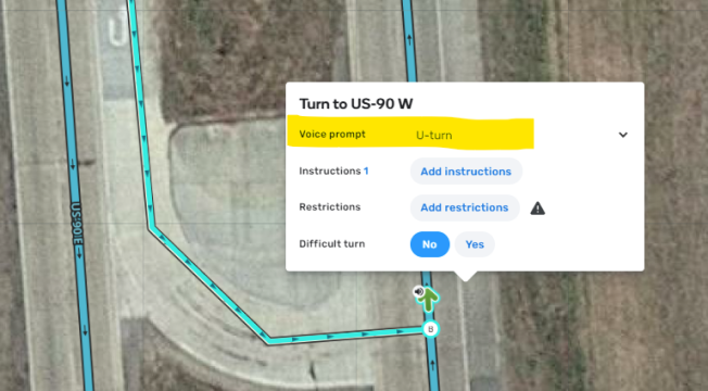 - Continue. The turn should be specified as “Continue” voice prompt when the stopping point is directly (or almost directly) facing the next outbound segment.