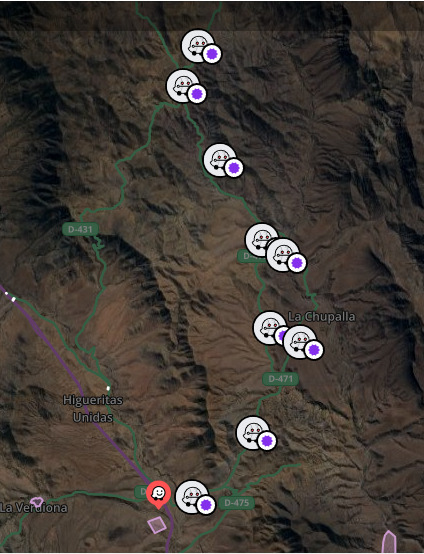 Razón: Solicito aceptar mis sugerencias de edición de las carreteras D-479 y D-471, ambas están pavimentadas en la actualidad.