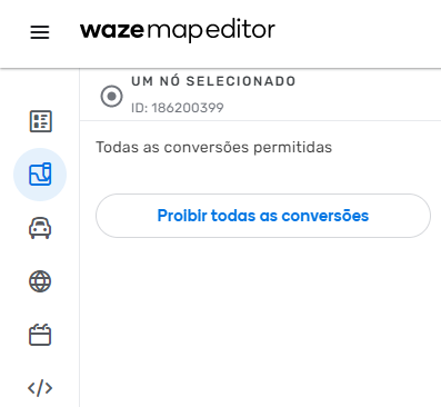 | Hard Restricted | Alta | Ao clicar em uma seta verde, a cor é modificada de verde para vermelho. | O Waze normalmente não traçará rotas que passem por essa conversão. | |
