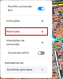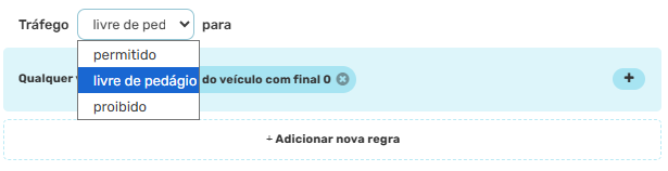 Também é possível definir uma restrição em casos de vias com pedágio com opção de pedágio livre apara determinados critérios. Nesta opção a restrição de tráfego aparecerá na cor azul.