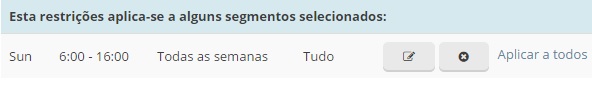 Veja a seção Programando restrições para mais informações sobre como configurá-las. Restrições de segmento e de conversões são feitas pelo mesmo procedimento descrito a seguir. Você pode criar múltiplas restrições em diferentes horários do mesmo dia, ou ainda em diferentes horários de dias da semana diversos.