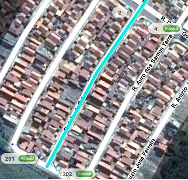 Quando a via tem números corretos (par e ímpar não forçados) inseridos nas “pontas” dos segmentos o número forçado fora da sequência é localizado, aquele exato fixado também é localizado e a interpolação é mantida belezinha.