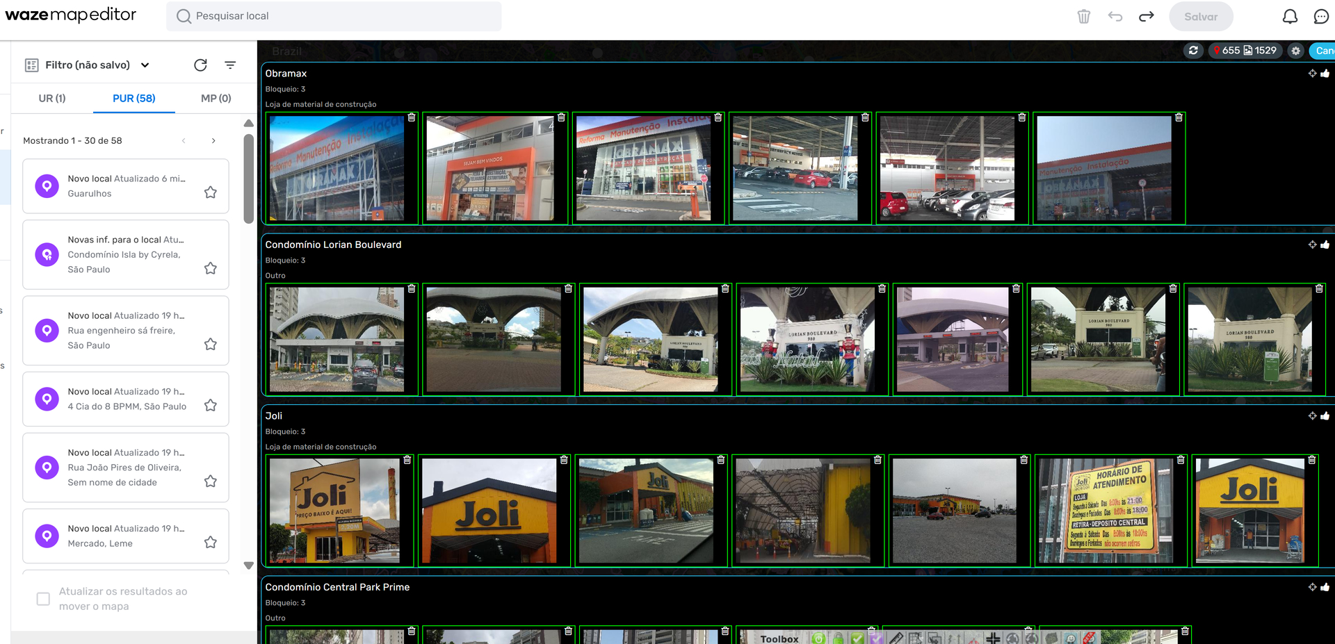 Só neste exemplo podemos perceber um monte de imagens fora dos padrões da Wazeopedia, e com poucos cliques podemos excluir várias imagens inadequadas.