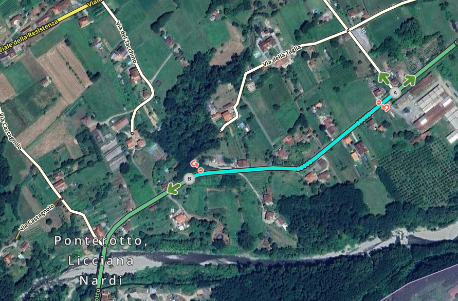 ha il limite di velocità da A a B impostato a 30Km/h a causa di un incidente avvenuto parecchio tempo fa che aveva distrutto il guard rail.