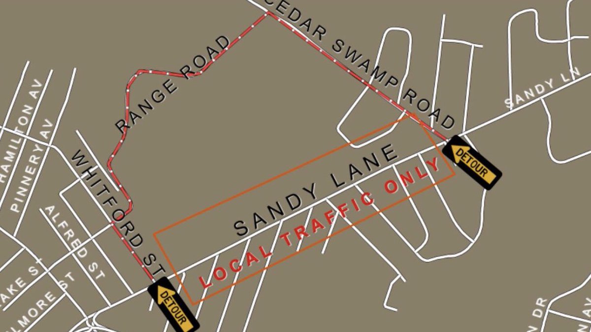 I live off of Sandy Lane in Warwick and they’ve closed a good amount of it and they are now directing traffic down Cedar Swamp Rd. and they’ve connected this formerly dead end road with Range Road, that goes behind the ball fields and what not.