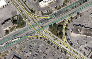 - Try to avoid frequently switching roads back and forth between being divided and two-way single segments. If only a small portion seems better off divided, consider keeping it all two-way. If only a small portion of the road is divided by a median (such as at intersections), it may be better not to divide any of it.