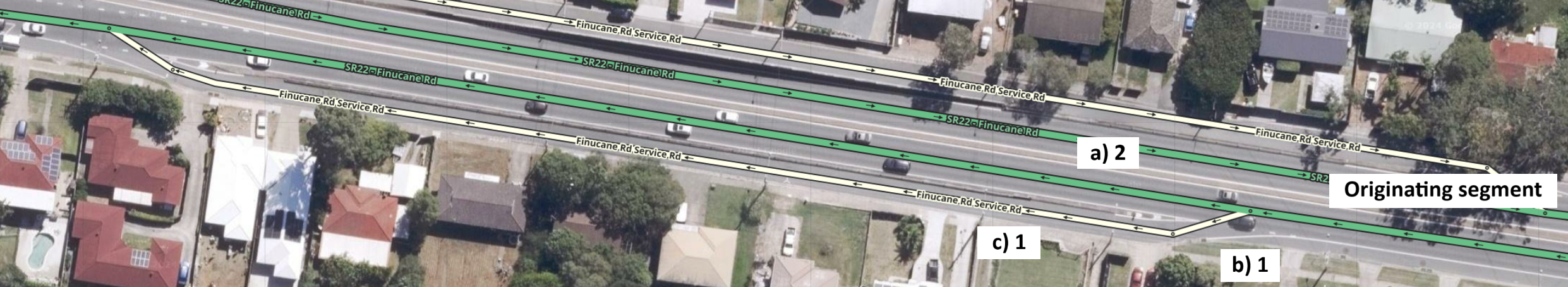 - c) To ensure Falcon does not recalculate and set the vehicle back to the minor highway, set the service road street segment to one lane.