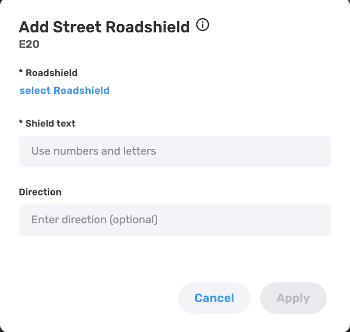 By clicking on the item that appears, you can choose the shield and (if necessary) type in the direction of travel (West, East, North, South).
