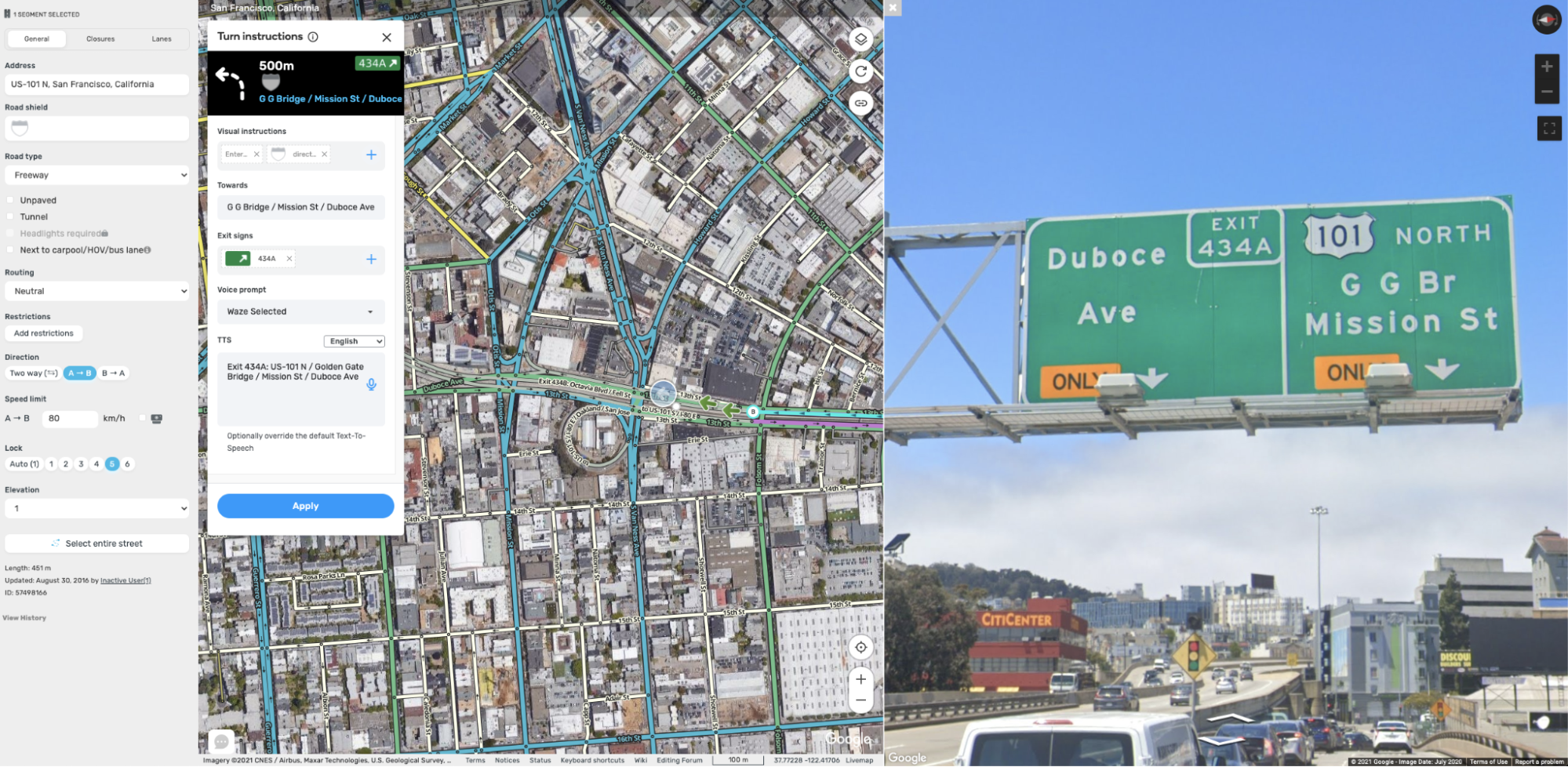 - If no edits were done on the turn guidance but the street has a roadshield (or roadshield with direction): If all the following conditions are met the shield will replace the street name: