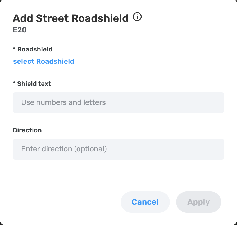 - Road shield In the turn instruction panel, you will only see streets that are nearby that turn. In case you want to show a roadshield that is further from that turn, you will need to click the “x” to remove the shield field, zoom out & pan until the street with the shield you want is visible, and try adding the road shield again.