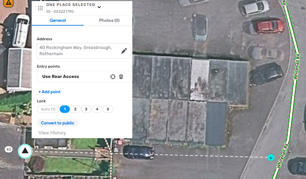 UR reports that 40 Rockingham Way, Rotherham cannot be navigated to as the front door is on a pedestrian only path.