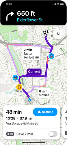Na App agora aparecem em 3 separadores onde desliza para ver os detalhes da rota atual e das alternativas.