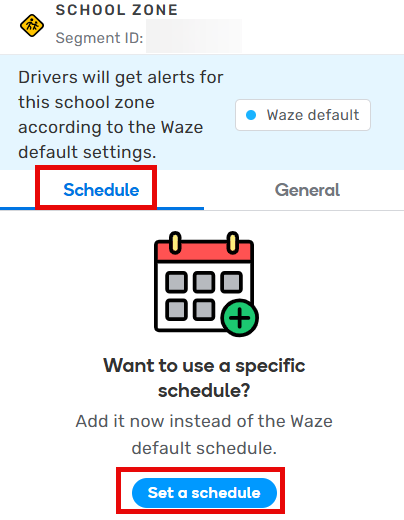 Similar to an inclusion schedule, except this schedule does not contain any exclusions. This is a Centrally Managed Community Schedule which is always active, it has no exclusions applied to it, and importantly, the times included in this schedule are when the School Zone is active or alerting in the Waze client. This schedule typically has no end date.