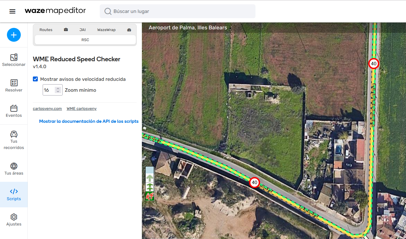 Este script se ha compartido también en el foro internacional de Scripts ([Script] WME Reduced Speed Checker)