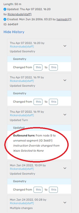 I’m also seeing an issue with segment history in both production and beta. When I click Show History, it displays a message “There was an error trying to load the history” instead of the history. I can see in the console a 500 error. This segment and some others near it are currently giving me the problem. https://www.waze.com/en-US/editor?env=usa&lat=37.23143&lon=-80.42384&marker=true&zoomLevel=17&segments=500917043