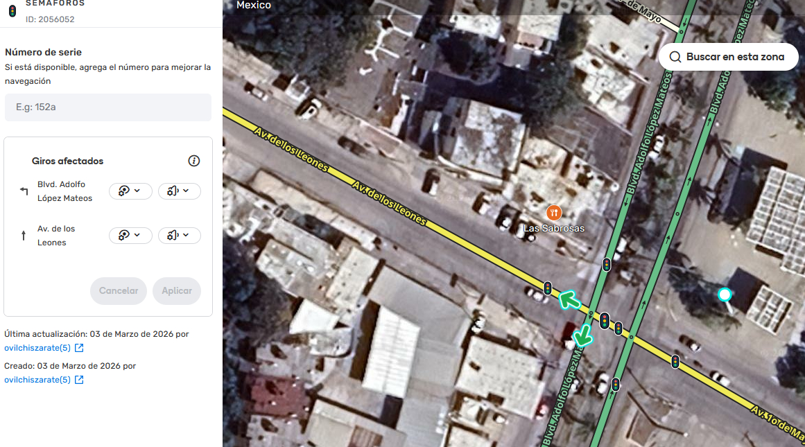 Cuando se coloca semáforo en este segmento viniendo de la Av. 1o. de Mayo se activa el giro a la izquierda, cosa diferente que si solo dejo el semáforo antes del Blvd. Adolfo López Mateos solo activa la vuelta a la izquierda y seguir derecho.