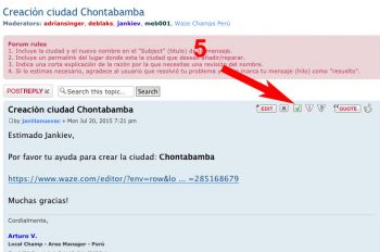 3. Incluye en el contenido de tu mensaje un permalink del lugar donde esta la ciudad que deseas añadir. Es recomendable que en el permalink hayas seleccionado una calle de la ciudad que será creada. Esa calle será la primera que tenga el nombre de la ciudad que se creará.