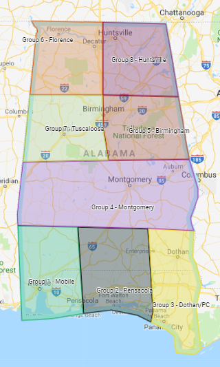 Group 5 - Birmingham Group 6 - Florence Group 7 - Tuscaloosa Group 8 - Huntsville