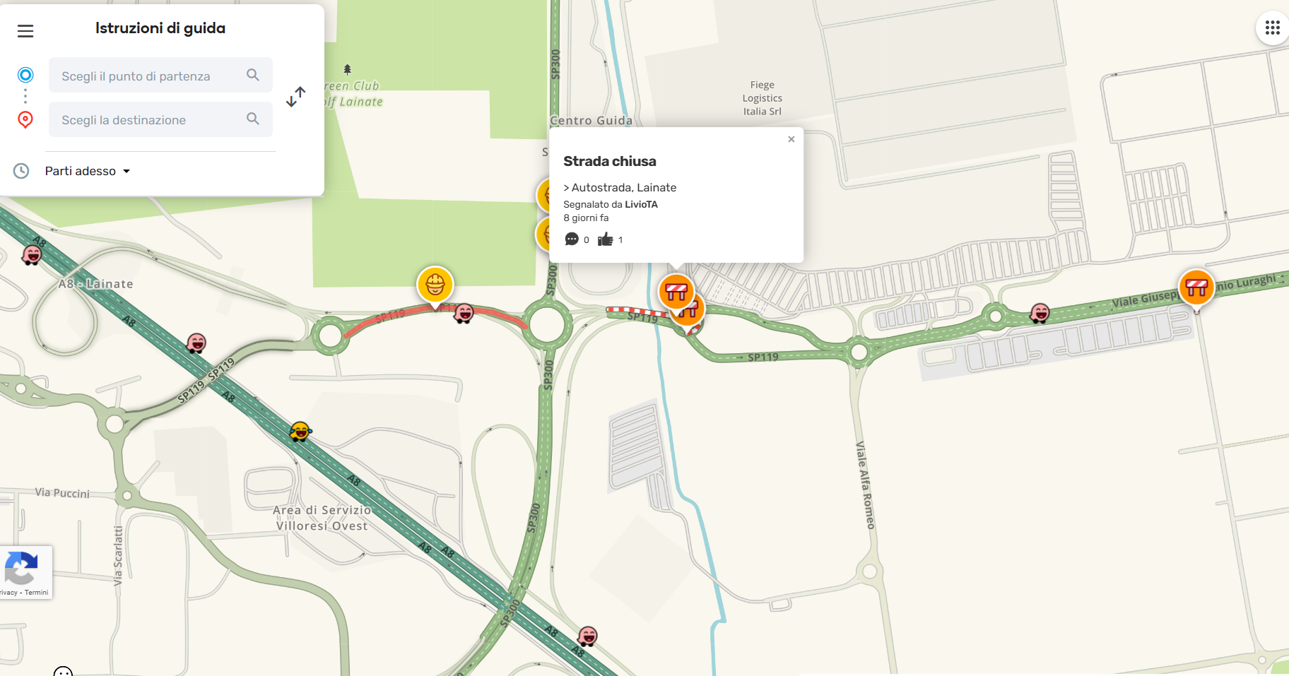 Il navigatore segnala da più di una settimana una strada chiusa per lavori, ciò non è vero l’ho percorsa per più volte da entrambi i lati. Si trova vicino al centro commerciale di Arese (SP119, direzione autostrada Linate)