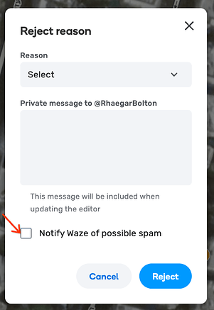 In general, we ask you to mark suggestions as spam when you notice an intention for map damage or abuse. Please use the spam checkbox in these cases.