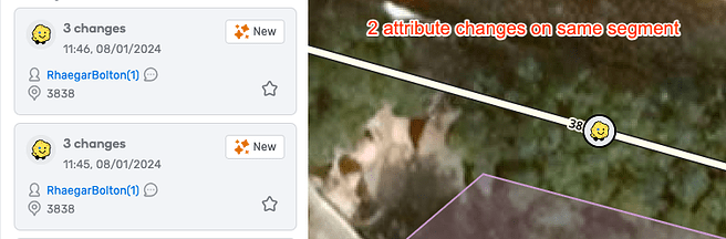 - A visual pin indicator will appear on the segment, and an alert message stating “your edits are pending” will appear in the left panel to confirm your submission.